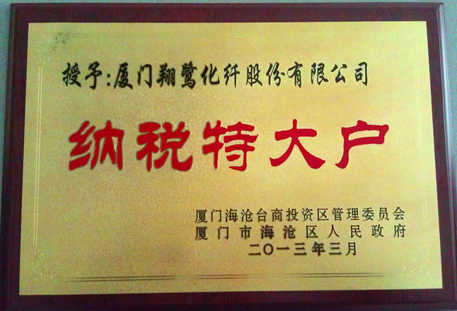 為表彰各企業(yè)對提升海滄區(qū)經(jīng)濟(jì)綜合競爭力,增加財政收入,促進(jìn)社會全面進(jìn)步作出的重要貢獻(xiàn),海滄區(qū)召開2012年度納稅大戶暨創(chuàng)建商標(biāo)品牌表彰大會,授予我司“納稅特大戶”稱號,并獎勵10萬元。