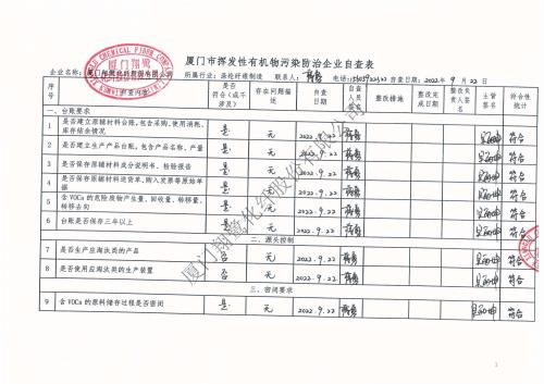 2022年第三季度揮發(fā)性有機物整治企業(yè)自查表